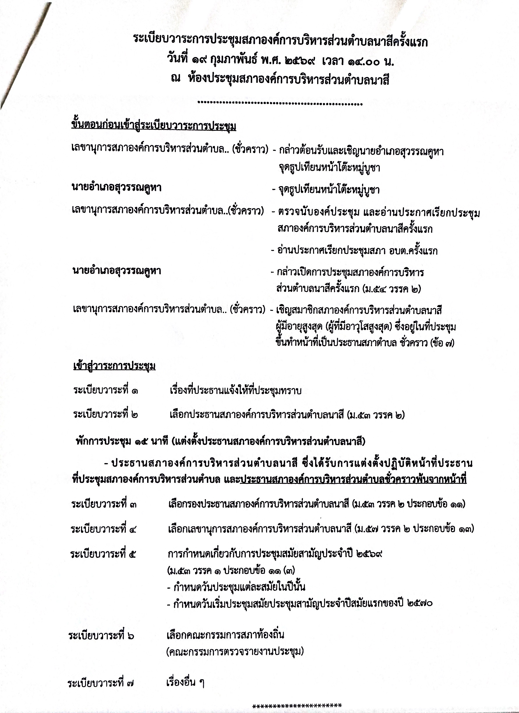 ประกาศอำเภอสุวรรณคู เรื่อง เลือกประชุมสภาองค์การบริหารส่วนตำบลนาสี ครั้งแรก