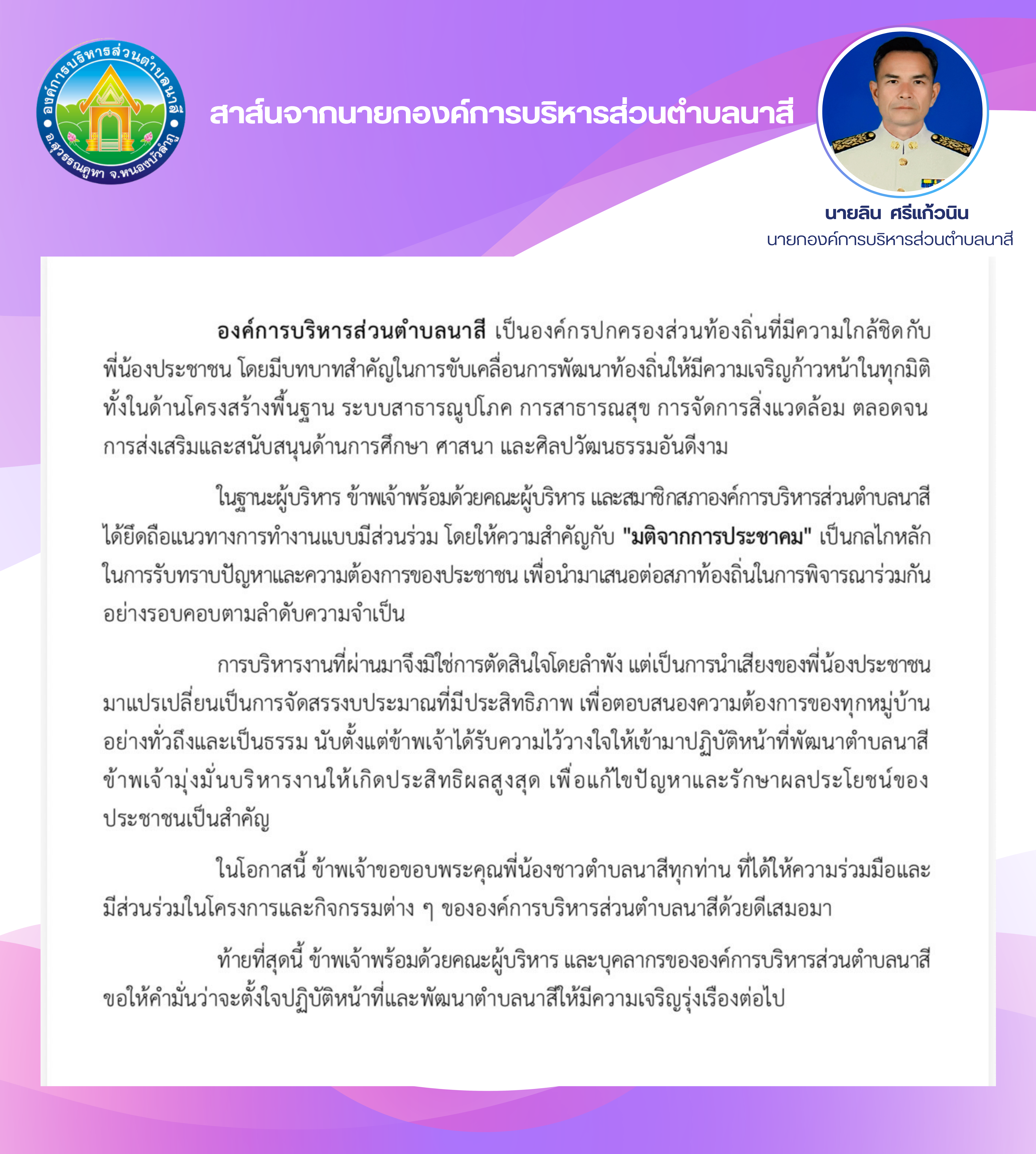สาสน์จากนายก อบต.