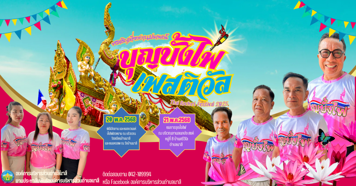 🌦️ #บุญบั้งไฟ 2568 👉ขอเชิญร่วมงานประเพณีบุญบั้งไฟ🚀 🤟องค์การบริหารส่วนตำบลนาสี🙏 👉ในวันที่ 20 - 21 พฤษภาคม 2568 ทีจะถึงนี้ 📌ณ บ้านนาสี หมู่ที่ 1 ตำบลนาสี อำเภอสุวรรณคูหา